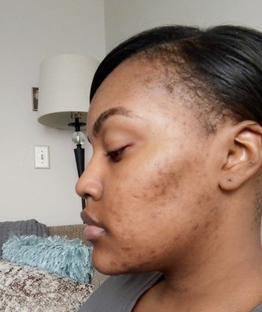 After I turned 21, I started experiencing hormonal acne off and on constantly. During the Summer, I expressed to you all I was experiencing breakouts due to the hot weather. I was breaking out on my forehead, sides of cheeks, and my jawline. I was consuming more sugar as well. I mean how can you say no to ice cream? I sure can’t, especially almond poppyseed or mint chocolate ice cream. Due to those breakouts, I am dealing with hyperpigmented, dry, and irritated skin. Yes, it is winter time so your skin is more prone to breakouts and being dry and irritated. That is me right now. My skin looks like it is battling a war zone literally. Okay, maybe not a war zone but this is by far the most horrible breakout I have experienced in my adult years.